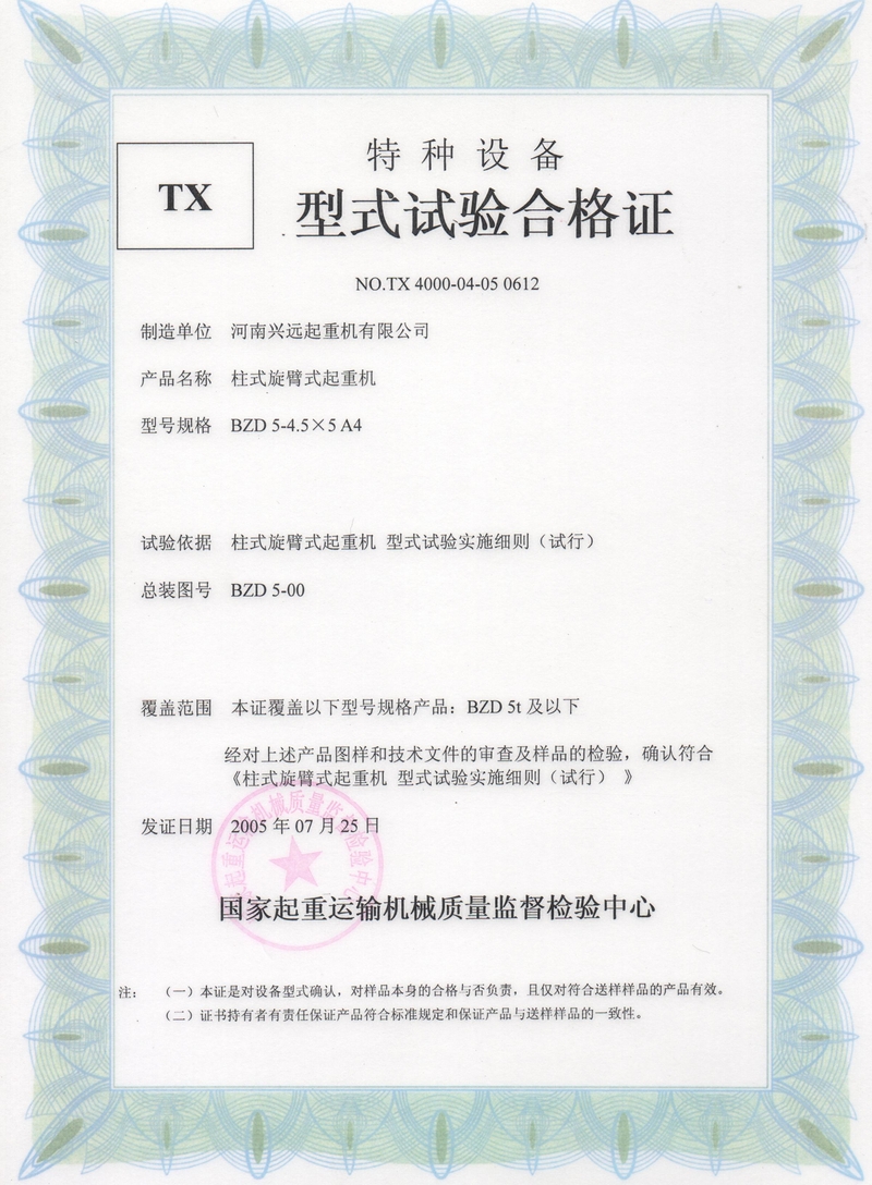 BZD5T型式試驗合格證