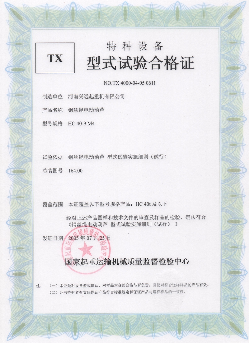 HC40T型式試驗合(hé)格證