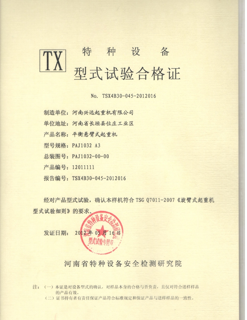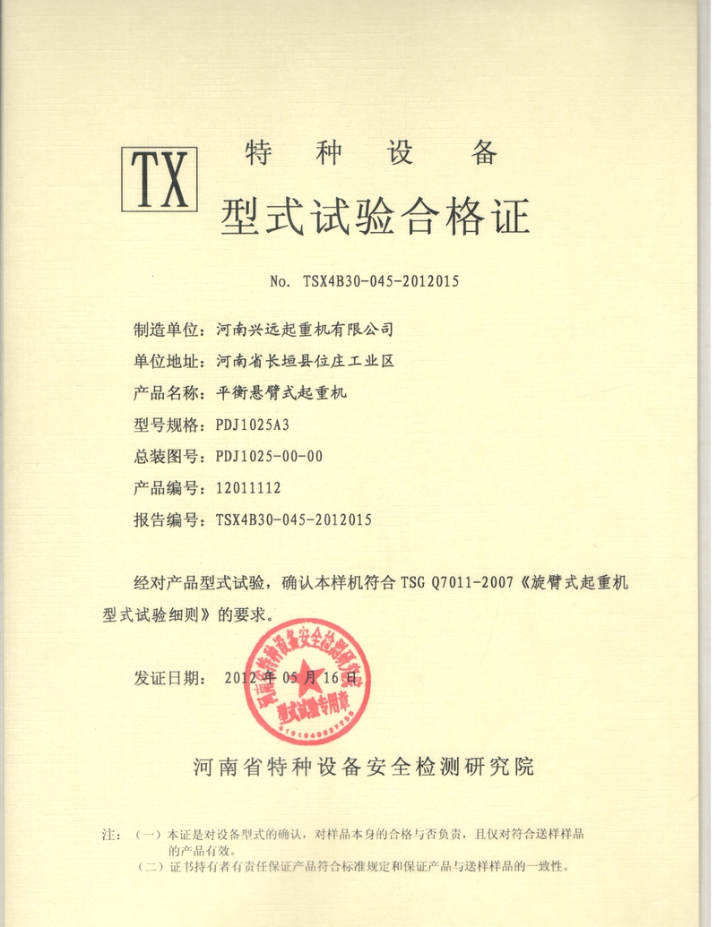 CD16T型式(shì)試驗合格證