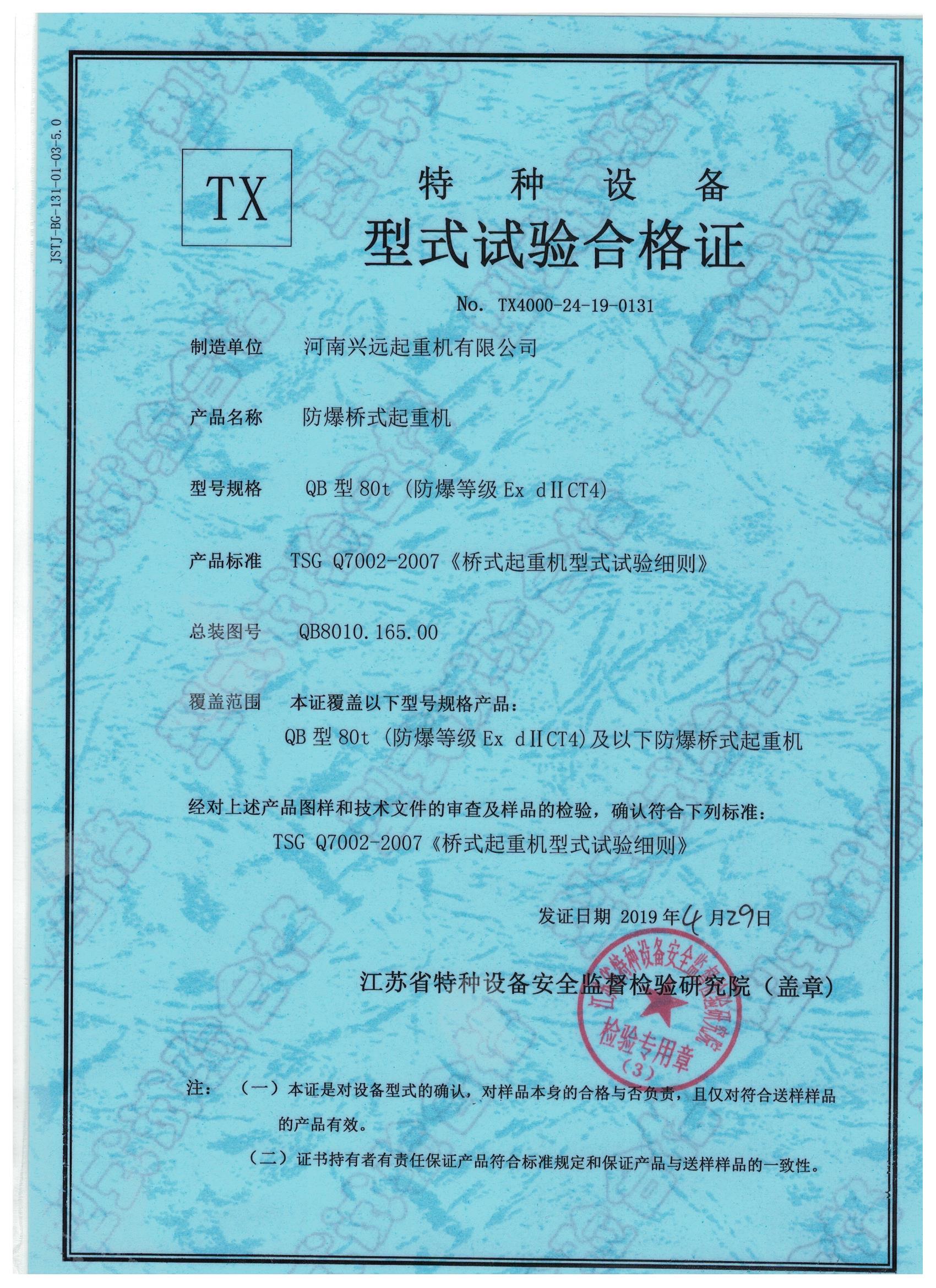 防爆橋式起重機資質